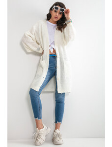 BASIC Smetanový dlouhý háčkovaný kardigan --ecru Smetanová