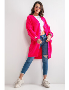 MladaModa Kardigánový úpletový svetr model 2019-2 jasný růžový