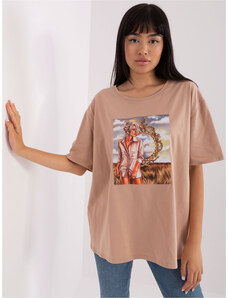 BASIC Béžové oversize tričko s potiskem -beige Béžová