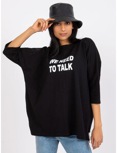 RUE PARIS Černé dámské volné tričko s nápisem -black Černá
