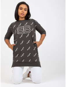 RELEVANCE Khaki delší tričko s potiskem --khaki Šedá
