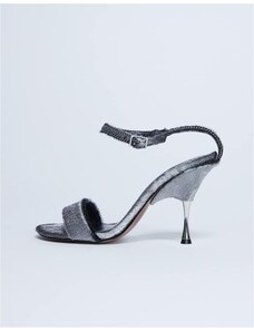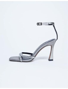 Topshop Fran metal high heel sandal in silver hair on real leather