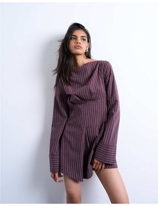 Topshop cut about long sleeve mini dress in burgundy stripe-Red