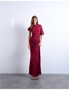 Topshop short sleeve asymmetric slinky maxi dress in red
