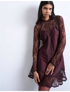 Topshop lace sleeve flippy hem mini dress in port royale-Red
