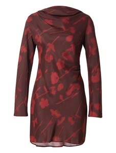 Topshop crinkle cowl neck sea print mini dress in burgundy-Multi