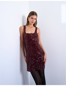 Topshop sequin scoop neck mini dress in burgundy-Red