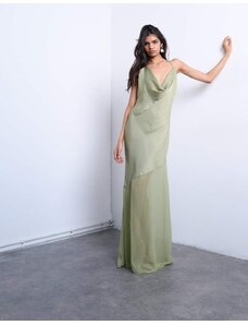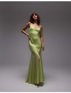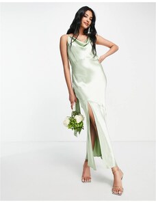 Topshop bridesmaid tie back satin slip dress in sage-Green
