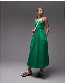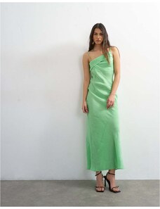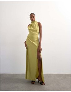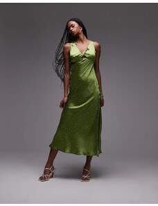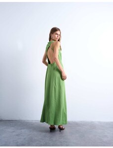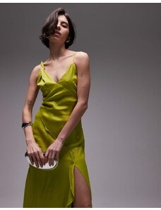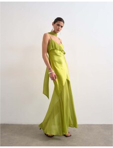 Topshop cowl back bandeau midi dress in cupro lime-Green