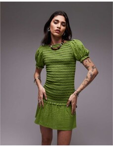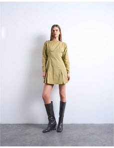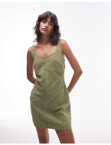 Topshop scoop neck mini shell embellished dress in khaki-Green