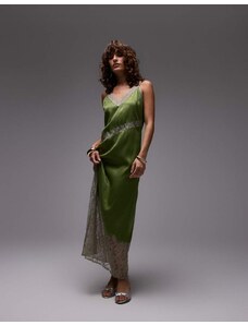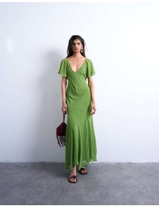 Topshop cupro wrap detail maxi dress in khaki-Green
