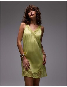 Topshop satin bandeau mini dress in chartreuse-Multi