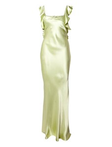 Topshop ruffle shoulder satin slip dress in deep lime-Green