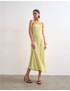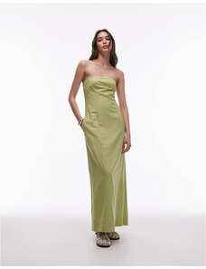 Topshop linen heavy seamed bandeau midi in Pistachio green