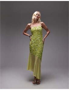 Topshop premium mixed fabric godet hem midi dress in lime-Green