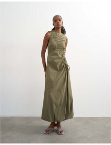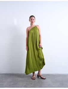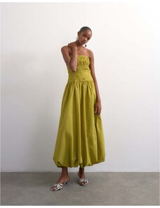 Topshop drawcord detail tech fabric balloon maxi dress in khaki-Green