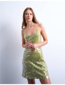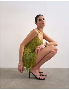 Topshop embellished godet hem cami dress in lime green-Yellow