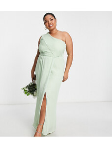 Yaura Plus Bridesmaid drape one shoulder maxi dress in sage-Green