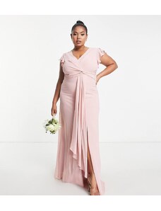 TFNC Plus Bridesmaid flutter sleeve ruffle detail maxi dress in blush-Pink