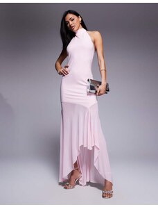 ASOS DESIGN highneck maxi dress with sheer skirt in light pink