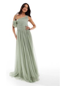 Lace & Beads Bridesmaid one shoulder maxi dress in dusty sage-Green