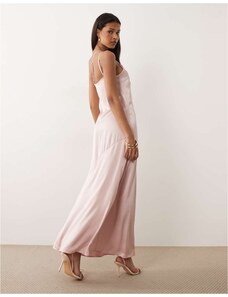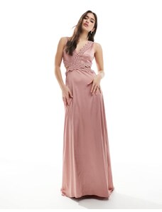 TFNC Bridesmaid satin maxi dress with scalloped lace detail in dusky pink