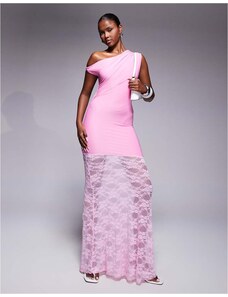 Topshop one shoulder cutwork lace detail maxi dress in pink
