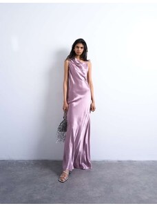 TFNC Bridesmaids satin asymmetric one shoulder midaxi dress in dusky lilac-Purple