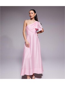 Six Stories Bridesmaids satin drape one shoulder maxi dress in rose pink