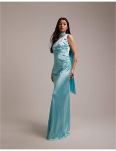 Six Stories Bridesmaids one shoulder scarf detail gathered maxi dress in turquoise-Blue