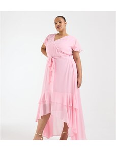 TFNC Plus Bridesmaids hi-lo frilly chiffon maxi dress in pink