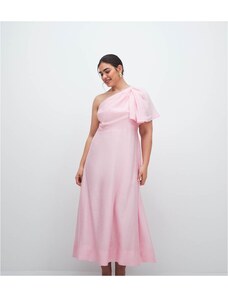 Forever New Curve linen one shoulder bow detail midi dress in pink