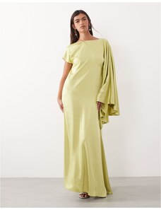 ARRANGE asymmetric one shoulder satin maxi dress in lime-Green