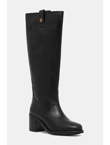 Kožené kozačky Tommy Hilfiger RIDING LTHR LONG BOOT BLOCK HEEL