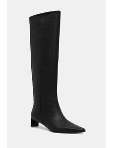 Kožené kozačky Calvin Klein SET BACK KITTEN HEEL KNEE BOOT