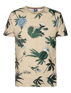 Petrol Industries Tričko tmavě béžová / tyrkysová / rákos / bílá