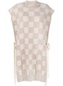 light beige/ivory white knitted construction checkerboard knit crew neck sleeveless side tie fastening straight hem thigh-length
