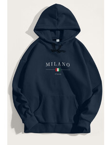 Mikina s Kapucí, Barva Modrá, s Potiskem Milano Italia