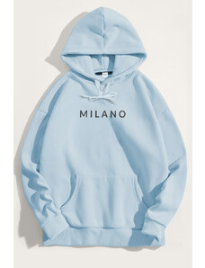 Mikina s Kapucí, Barva Nebesky Modrá , s Potiskem Milano Grey