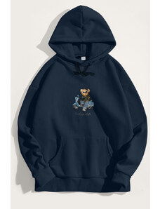 Mikina s Kapucí, Barva Modrá, s Potiskem Vintage Style Teddy