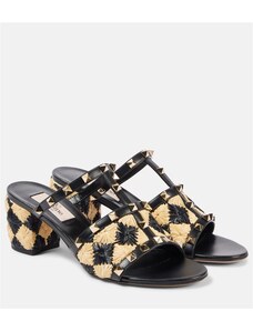 Valentino Garavani Rockstud 60 raffia-effect mules