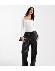 Vero Moda Tall tie waist wide leg faux leather trouser in black