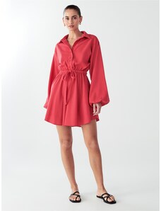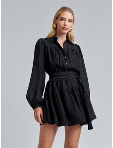 Design: Léga na knoflíky, Elastický pas/okraj, Nabírané rukávy, Opasek v pase; Typ uzávěru: Knoflíkové zapínání; Materiál: Recyklovaný materiál; Vzor: Jednobarevný; Košilový límec: Stojáček; Detaily: Volán, Nařásněné; Extra: Lehce průsvitné, Švy tón v tónu, Splývavá látka; Délka: Ke kolenům; Střih: Normální střih; Délka rukávu: Dlouhý rukáv. R-0.11. P-0.3529497796. RQ-0.67