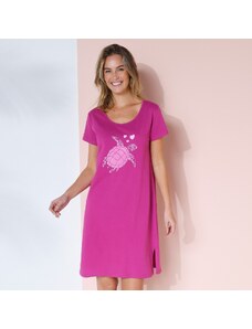 Blancheporte Dlouhá noční košile s krátkými rukávy a potisk želvy malinová