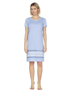 Blancheporte Dlouhá noční košile s krátkými rukávy a potiskem rozet blankytně modrá