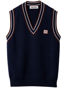 Miu Miu striped-trim knit vest - Blue