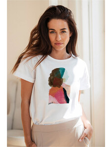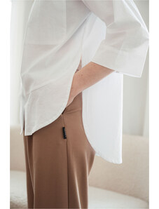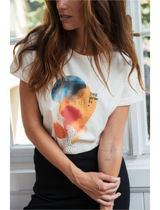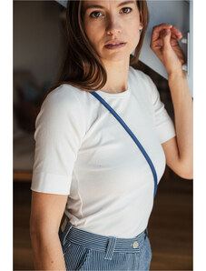 Hravá proužkovaná verze triček střihu Lia. Jsou ušité z příjemného úpletu a vyhráli jsme si s položením jednotlivých dílů trika tak, aby proužky hezky tvořily kontrast. Jako třešnička už jen pak přibylo naše vyšité letadélko. Triko můžete nosit zastrčené do kalhot, nebo volně na boky. Základ šatníku po celý rok. Velikostně je triko velkorysé - střih je rovný s přinechanými rukávy a předšitými manžetami.