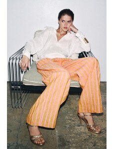 ZARA KALHOTY ZE SMĚSI LNU S PROUŽKY ZW COLLECTION pruhované XS