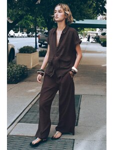 ZARA ZW COLLECTION ŠIROKÉ KALHOTY S ROZPARKY Hnědá Hnědá XS