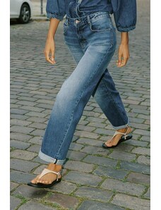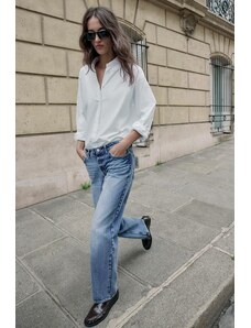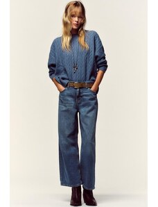 ZARA DŽÍNY Z.07 RELAXED FIT S VYSOKÝM PASEM A OHRNUTÝM LEMEM Modrá 32